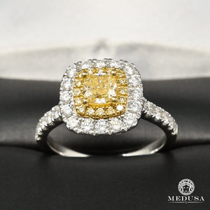Bague de fiançailles à diamants style ''Solitaire'' Princess Cut. Le diamant est la pierre précieuse la plus répandue pour une bague de fiançailles. Il est l’emblème suprême de l’amour car il est symbole de pureté et d’éternité.