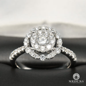 Bague de fiançailles à diamants style ''Solitaire''. Le diamant est la pierre précieuse la plus répandue pour une bague de fiançailles. Il est l’emblème suprême de l’amour car il est symbole de pureté et d’éternité.