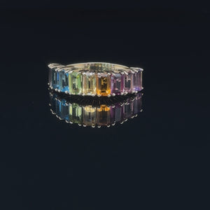 Bague à Pierre Précieuse Multicolore en Or 10-Karat
