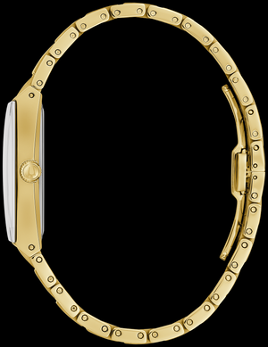 En collaboration avec l'interprète légendaire Marc Anthony, cette nouvelle montre Quadra pour hommes de style tank Bulova combine l'esprit de son talent artistique avec le design intemporel de Bulova. Le boîtier en acier inoxydable doré rappelle le design emblématique de la montre, tandis que le cadran noir profond est rehaussé d'aiguilles et d'index dorés. Des diamants éclatants sont sertis à 1, 3 et 5 heures, choisis par Marc pour leur signification personnelle et le fond du boîtier est gravé de la signature d'Anthony. Un bracelet multilien complexe crée une silhouette harmonieuse avec le boîtier, avec une fermeture déployante à bouton-poussoir pour un ajustement et un confort exceptionnels. Offrant un style durable avec une touche d'originalité, la Bulova Quadra pour hommes fabriquée en partenariat avec Marc Anthony est le choix idéal pour le gentleman moderne.