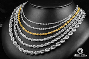 ''Torsade'', Chaîne à maille torsadée disponible dans toutes les dimensions et longueurs. Ce modèle est idéal pour porter avec un pendentif.