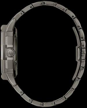 Nouveauté de la collection Crystal pour hommes, cette montre est dotée d'un mouvement automatique 8N26 dans un boîtier et un bracelet en acier inoxydable à placage ionique gris avec boucles déployantes et doubles poussoirs. Il est orné de 251 cristaux sur la lunette, le bracelet et le cadran squelette à placage ionique gris. Etanche à 30 mètres.