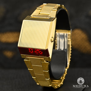 En insufflant des éléments modernes à certaines des montres les plus emblématiques et nostalgiques de Bulova, la série Archive se poursuit avec le Computron numérique à DEL. L'élégant design en acier inoxydable doré comprend un écran à LED rouge, une fonctionnalité numérique étendue avec des fonctionnalités de double fuseau horaire et un design rétro distinct qui est aussi pertinent aujourd'hui qu'il l'était dans les années 1970.