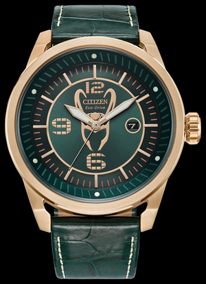 Le personnage Loki des studios Marvel se retrouve dans la dernière montre Citizen inspirée de ces célèbres studios. Cette remarquable montre est dotée d’un boîtier en acier inoxydable de couleur or, avec de cornes facettées reliées à un bracelet en crocodile vert foncé, et un fond de boîtier arborant l’icône de l’Autorité des variances temporelles. Au centre du cadran à trois aiguilles, le graphisme du casque de Loki de couleur dorée se détache sur un fond vert profond. La couleur du casque à cornes est complétée par des touches assorties dans les marqueurs des heures, la fenêtre pour l’indicateur de date et les détails périphériques. Équipée de la technologie Eco‑Drive exclusive à Citizen alimentée par la lumière sous toutes ses formes, cette montre élégante n’a jamais besoin de pile.
