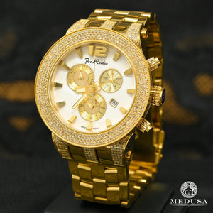 Cette montre Joe Rodeo est décorée avec des diamants véritables de haute qualité et est livrée avec un mouvement chronographe SWISS entièrement fonctionnel, un boîtier en acier inoxydable et un dos en acier inoxydable numéroté et gravé individuellement. Étanche jusqu'à 100m (330ft). Cette montre en diamant est garantie à 100% tout neuf et authentique et sera livrée dans un emballage de fabrication original avec deux bandes supplémentaires et tous les documents originaux.