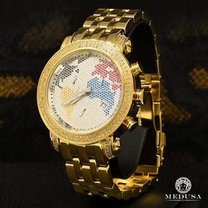 Cette montre Joe Rodeo est décorée avec des diamants véritables de haute qualité et est livrée avec un mouvement chronographe SWISS entièrement fonctionnel, un boîtier en acier inoxydable et un dos en acier inoxydable numéroté et gravé individuellement. Étanche jusqu'à 100m (330ft). Cette montre en diamant est garantie à 100% tout neuf et authentique et sera livrée dans un emballage de fabrication original avec deux bandes supplémentaires et tous les documents originaux.