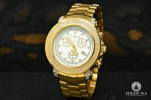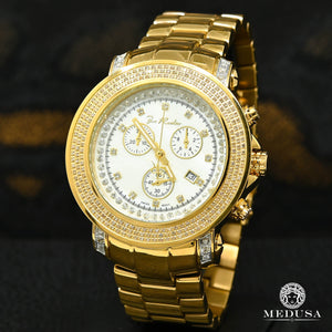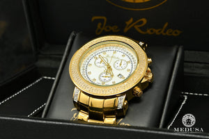 Cette montre Joe Rodeo est décorée avec des diamants véritables de haute qualité et est livrée avec un mouvement chronographe SWISS entièrement fonctionnel, un boîtier en acier inoxydable et un dos en acier inoxydable numéroté et gravé individuellement. Étanche jusqu'à 100m (330ft). Cette montre en diamant est garantie à 100% tout neuf et authentique et sera livrée dans un emballage de fabrication original avec deux bandes supplémentaires et tous les documents originaux.