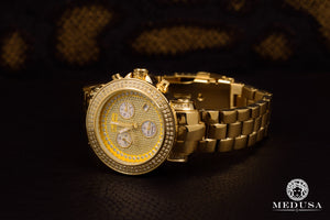 Cette montre Joe Rodeo est décorée avec des diamants véritables de haute qualité et est livrée avec un mouvement chronographe SWISS entièrement fonctionnel, un boîtier en acier inoxydable et un dos en acier inoxydable numéroté et gravé individuellement. Étanche jusqu'à 100m (330ft). Cette montre en diamant est garantie à 100% tout neuf et authentique et sera livrée dans un emballage de fabrication original avec deux bandes supplémentaires et tous les documents originaux.