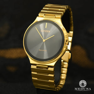 Dernier membre de la collection CITIZEN Stiletto, cette montre unisexe présente un boîtier asymétrique unique pour un style audacieux et moderne à ne pas manquer. Le boîtier et le bracelet en acier inoxydable doré sont associés à un cadran noir à deux aiguilles, et la couronne est soigneusement cachée à l'intérieur du boîtier pour un aspect et une sensation totalement homogènes. C'est également une montre Eco-Drive, alimentée de manière durable par la lumière et n'aura donc jamais besoin de pile. Pour tous ceux qui recherchent une montre de luxe qui se démarquera des autres, c'est l'accessoire parfait.