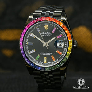 Montre Rolex 41mm en Or Modèle Datejust Noir Multicolore
